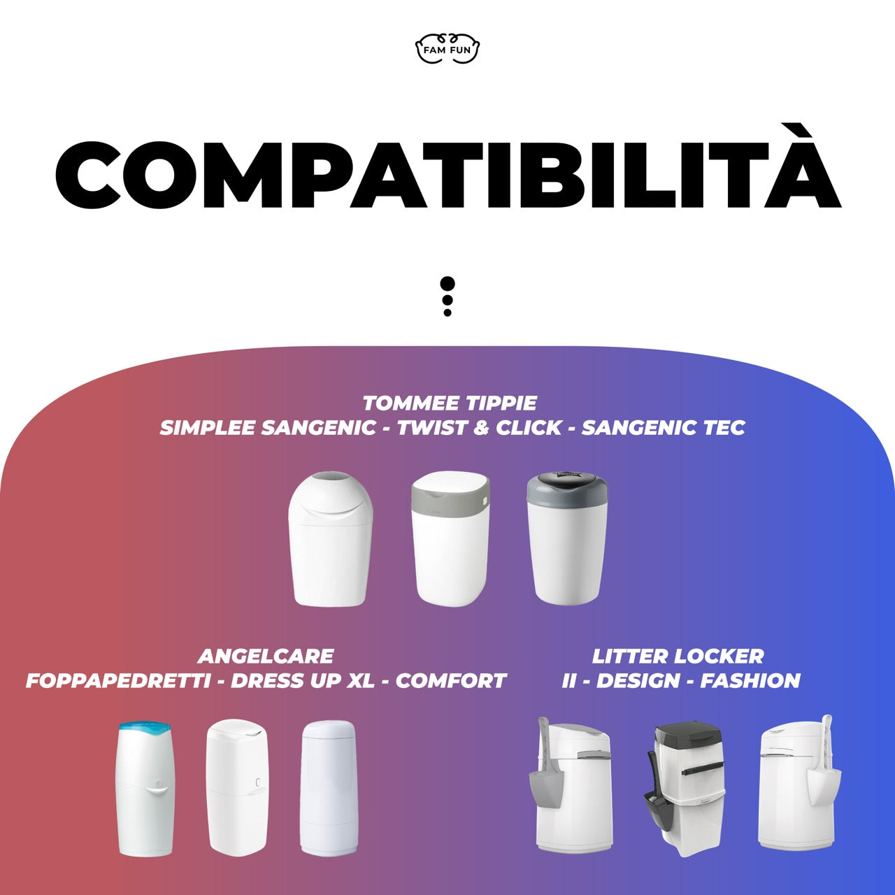 Sacchetti compatibili con Maialino e MissK Foppapedretti, Tommee Tippee, Litterlocker II, Design & Fashion. (Richiede una cartuccia originale vuota).